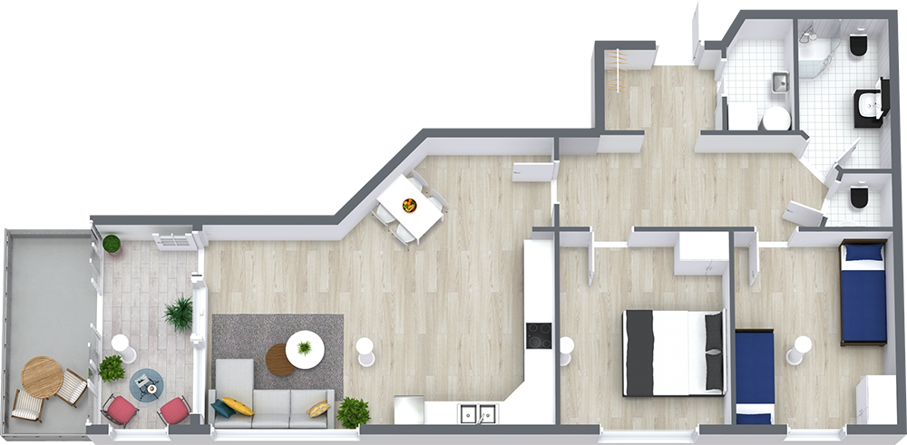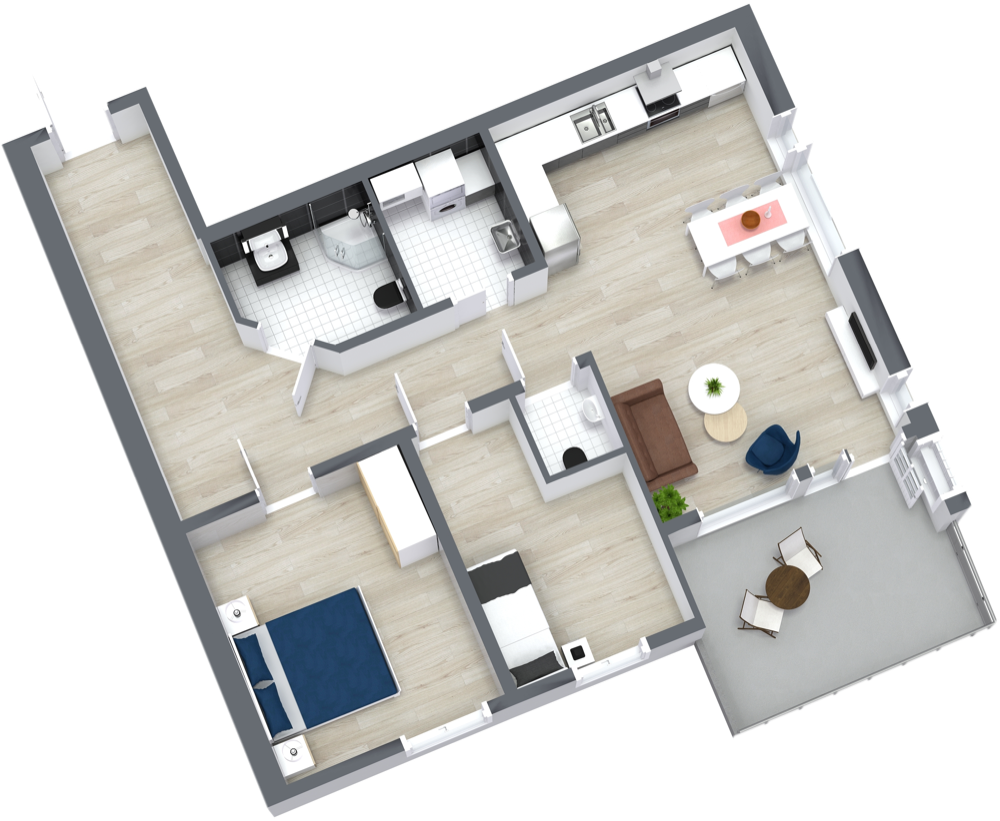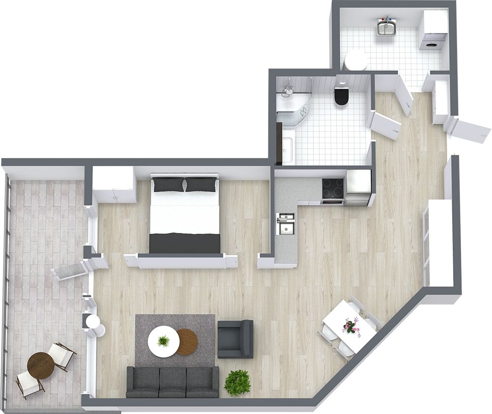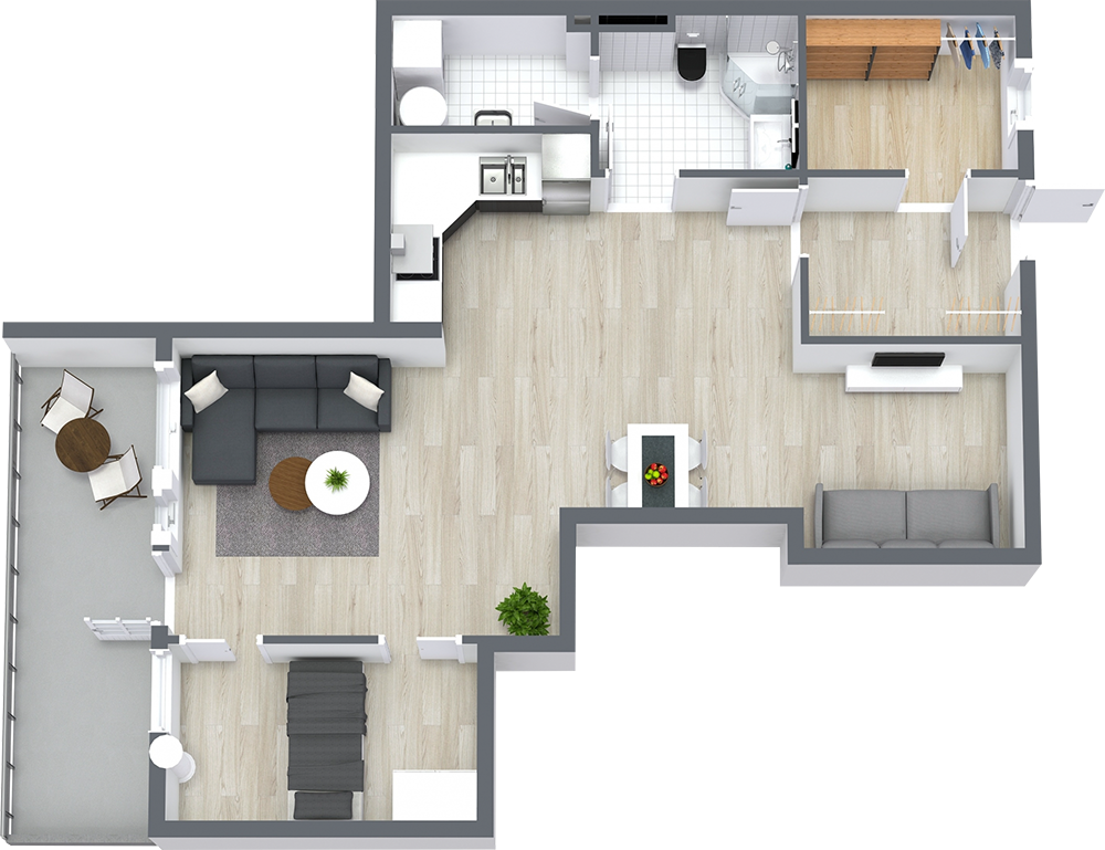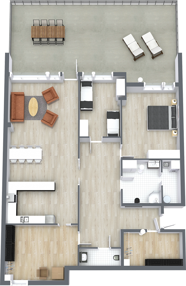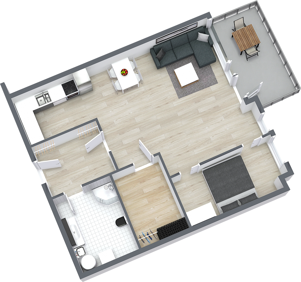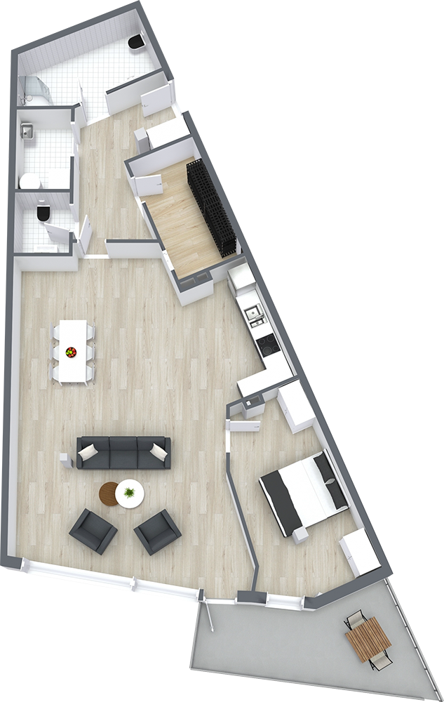 Vår største leilighet. Leiligheten er på 160 kvm og i tillegg er det en stor veranda på hele 71 KVM.