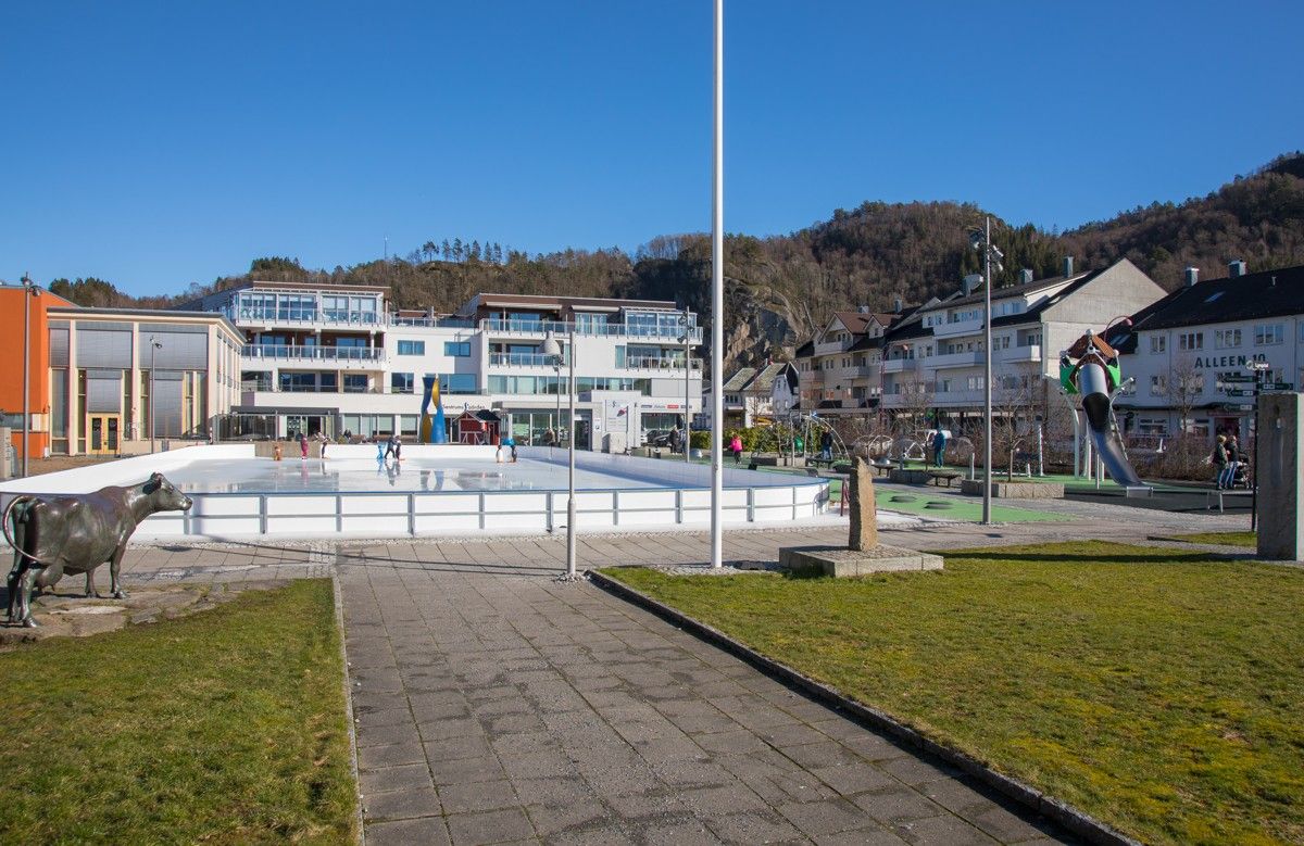 Her bor vi midt i byen, med alle fasiliteter innenfor et steinkast, kulturhuset som nærmeste nabo med bibliotek og ferske aviser hver dag. Samlingsplass for det sosiale, butikker av alle slag og Jonas med sine fortreffelige serveringer. Vil vi spise hjemme kjøper vi lapskaus hos Harry. Sist, men ikke minst: den fantastiske Miljøgata som fortoner seg helt eventyrlig i høstmørket og ellers med sine tilstelninger året gjennom.